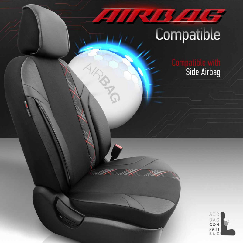 Štandardné poťahy majú certifikovaný šev AIRBAGový, vďaka čomu sú vhodné pre autá s bočnými airbagmi v sedadlách, ako aj pre štandardné sedadlá. Vďaka použitiu špeciálneho švu pokrývajú sedadlá úplne bez toho, aby narúšali prácu AIRBAGOV.