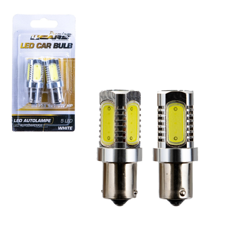 Sadu kvalitných LED žiaroviek BA15S 5*1.5W HP s bielou farbou svetla charakterizuje vysoká svietivosť, krásne čisté farby a vysoká životnosť. Vysoká svietivosť týchto žiaroviek má za následok zvýšenie rozhľadu z pozície vodiča na vozovku a tým zvyšuje vašu bezpečnosť pri dopravení sa do vami určeného cieľa. Životnosť LED žiaroviek neovplyvňuje ich časté vypínanie a zapínanie, spoľahlivo pracujú aj pri nízkych teplotách a nepotrebujú čas na zahriatie.