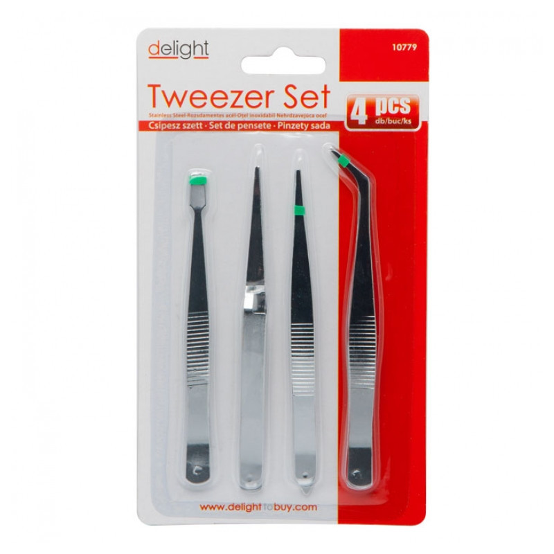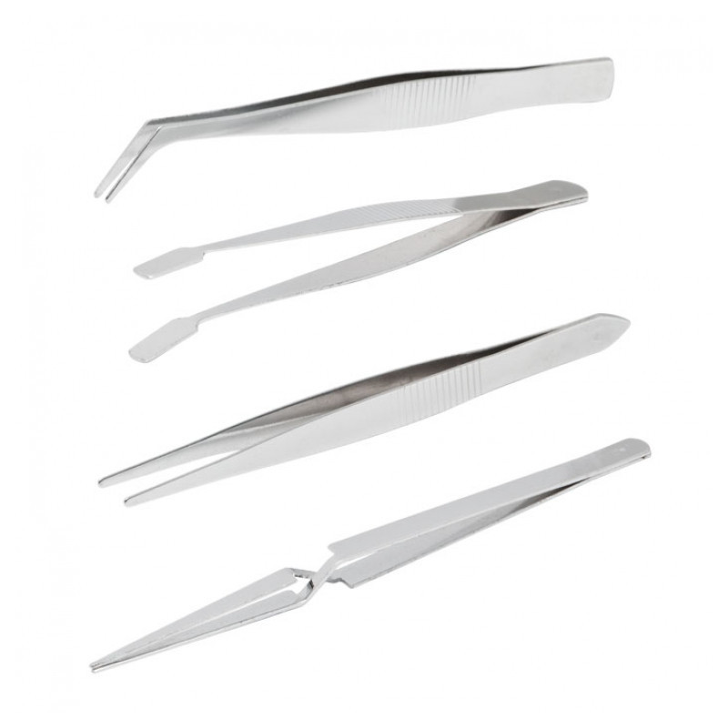 Nerezová sada pinziet s vrúbkovaním pre lepšie uchopenie. Doporučujeme do laboratórií, pri opravách hodín, modelárstve, oprave klenôt, elektroniky, pre kozmetické účely a pod.