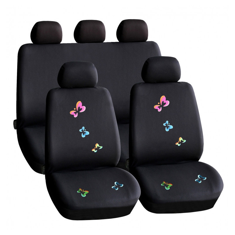 Sada poťahov na sedadlá - motýľový vzor / čierna - 9 ks