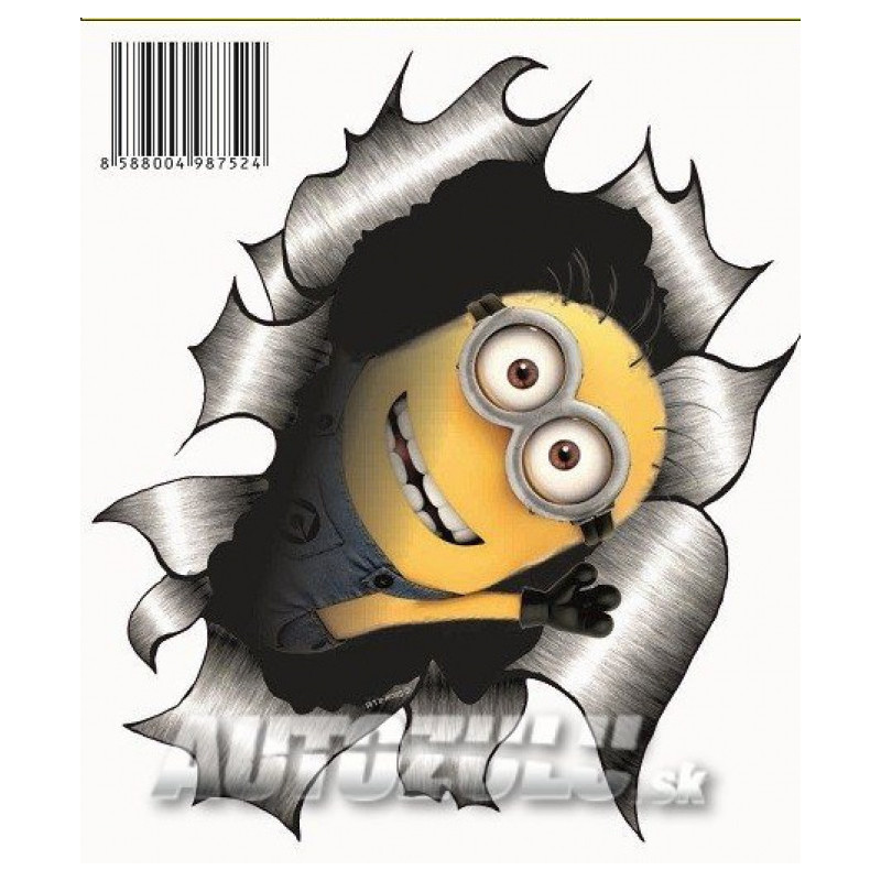 Krásna tlačená samolepka Mimoň roztrhnutý plech. Tlačená na bielu fóliu.