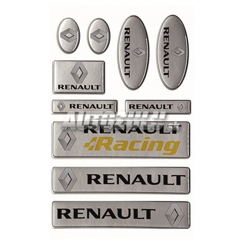 Sada živicových nálepiek Renault rôznych rozmerov.