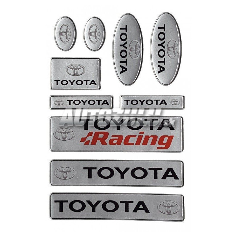 Sada živicových nálepiek Toyota rôznych rozmerov.
