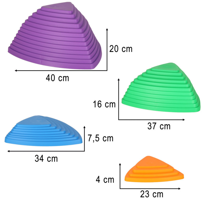 Súprava obsahuje všetko potrebné na vytvorenie dynamickej, farebnej zmyslovej dráhy pre deti - kamene možno ľubovoľne rozmiestniť a vytvoriť takjednoduché alebo zložité dráhy. Dieťa sa môže samo rozhodnúť, ako bude jeho trasa vyzerať, čo posilňuje pocit vlastnej iniciatívy a podporuje skúmanie. Hra s balančnými kameňmi môže mať mnoho podôb - od klasickej prekážkovej dráhy až po vzrušujúcuhru 'podlaha je láva'.