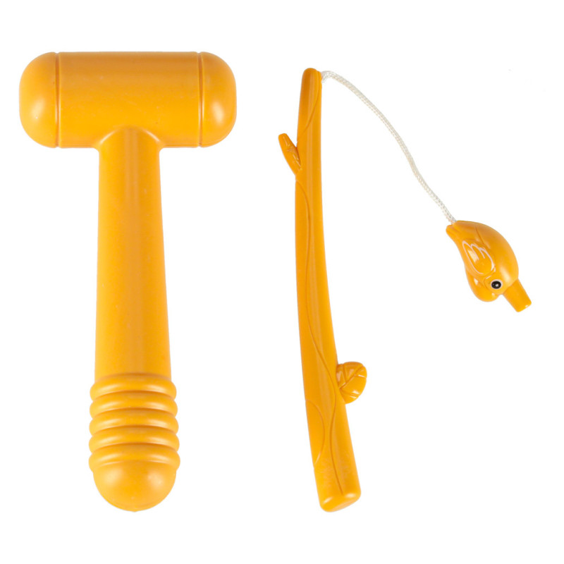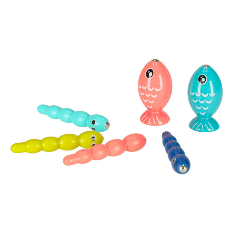 Súprava obsahuje množstvo prvkov, ako sú dve rybky, štyri červíky, kladivko a rybársky prút. Každý z týchto prvkov je nevyhnutný na aktívnu hru, ktorá vášmu dieťaťu poskytne veľa zábavy!