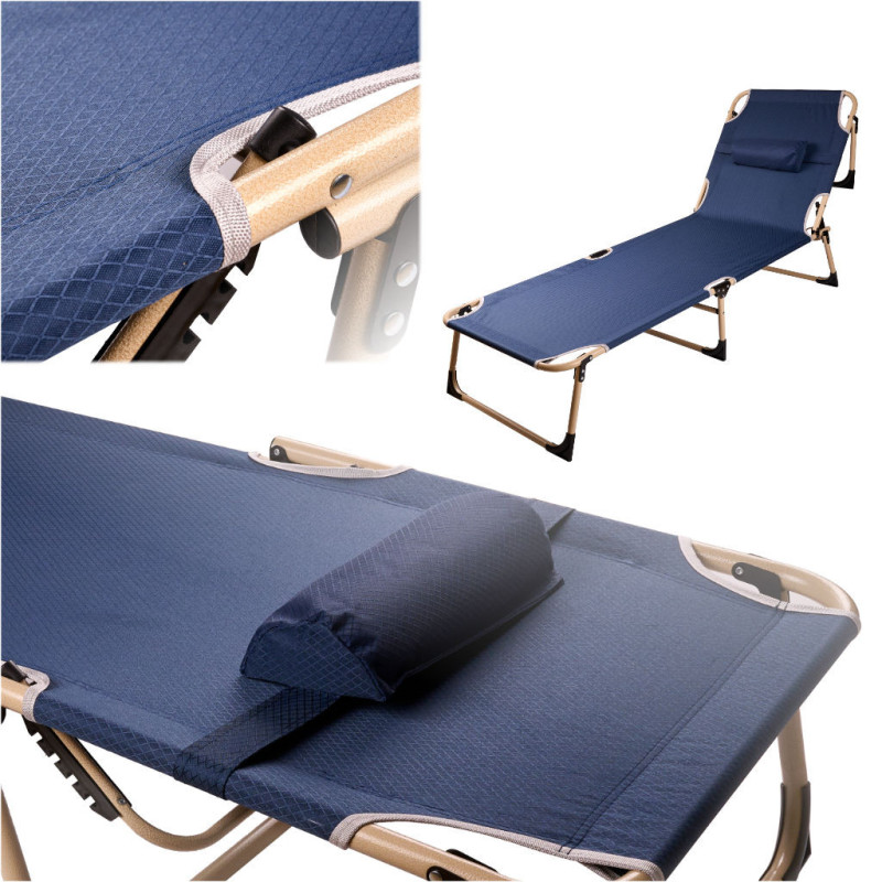 Posteľ je vyrobená z pevných materiálov, ako je oceľ a tkanina oxford, vďaka čomu je stabilná a odolná voči op otrebovaniu aj pri maximálnom zaťažení 120 kg. Pre maximálne pohodlie má 4-polohovú nastaviteľnú opierku, vďaka ktorej si môžete nastaviť jej polohu podľa svojich individuálnych potrieb. Môžete tak pohodlne relaxovať, čítať knihu alebo dokonca pracovať na notebooku bez obáv z bolesti chrbta. Vďaka jednoduchému skladaniu a rozkladaniu je poľná posteľ ideálna na výlety. V zloženom stave zaberá málo miesta, takže sa ľahko skladuje a prepravuje. Okrem toho je súčasťou balenia vankúš na hlavu pre ešte väčšie pohodlie pri spánku.