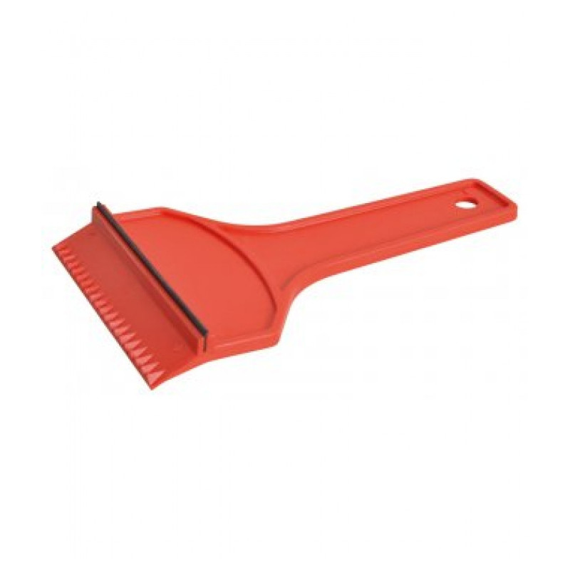 Klasická škrabka na ľad SUPER. Jednoduchý dizajn s vrúbkovanou stranou, hladkým profilom aj gumovou stierkou pre efektívne zotretie kvapiek.