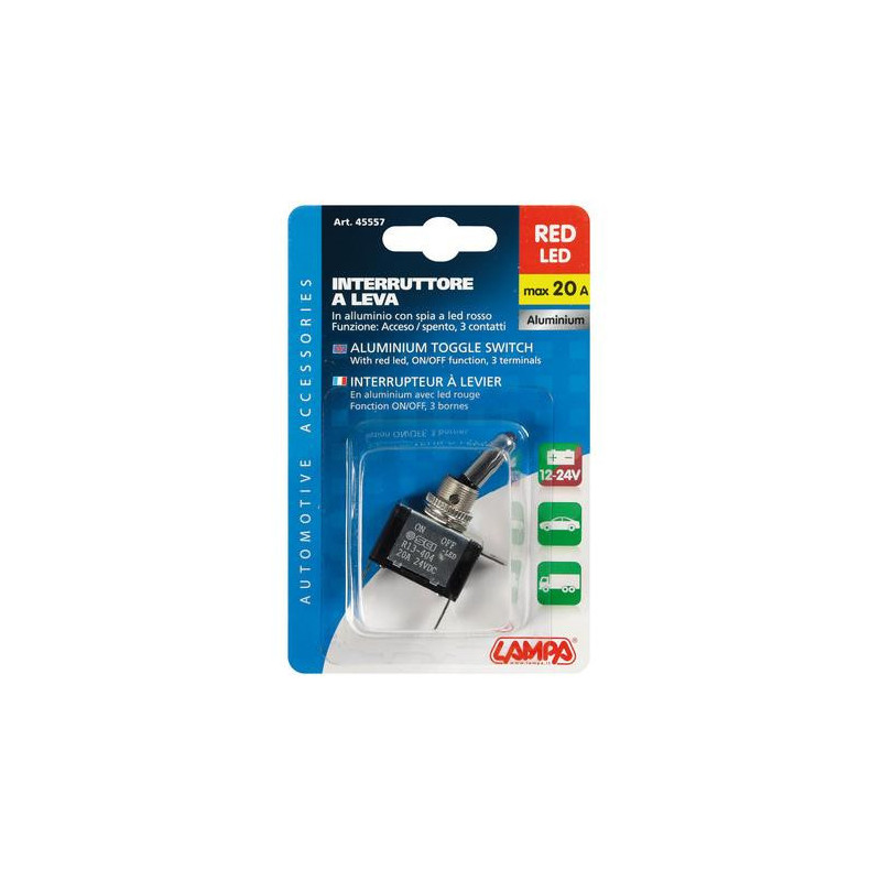 Spínač páčkový 12 V 20 A červený