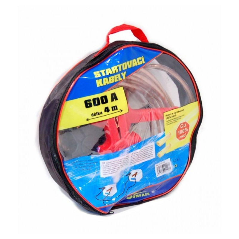 Extra silné a 4 metre dlhé štartovacie káble, celokovové kliešte, maximálny štartovací prúd 600 ampér. Kábel je vyrobený zo 100% medi. Neobsahuje žiadne prísady iných kovov, ktoré znižujú účinnosť štartovacích káblov. Uzatvárateľné balenie zipper bag, ľahké uloženie štartovacích káblov do praktického na zips uzatvárateľného obalu.