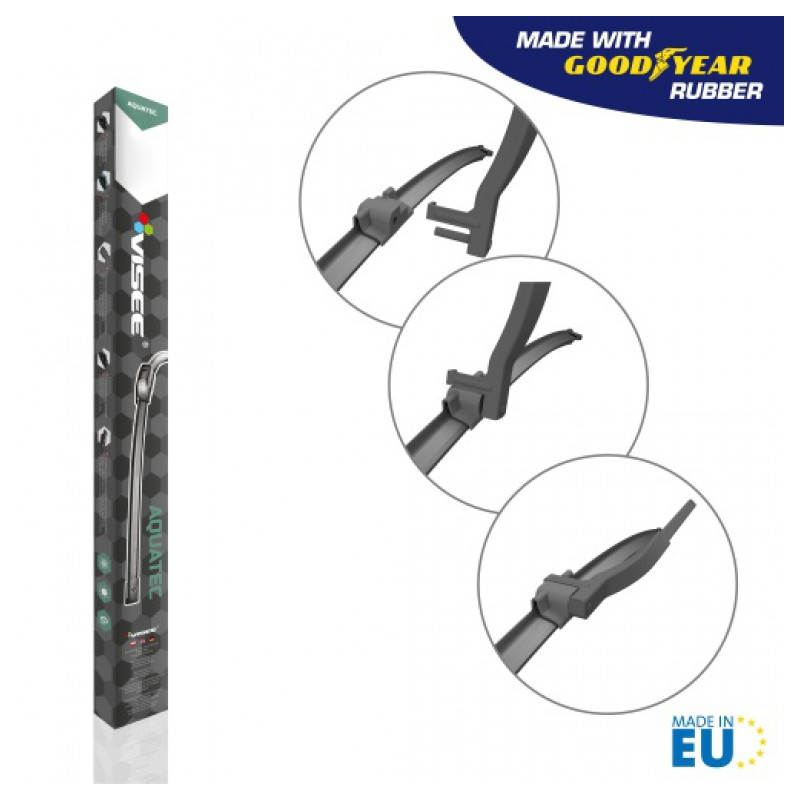 Stierače sú vyrobené z vulkanizovanej vysoko kvalitnej prírodnej gumy, obohatenej o aditíva, ktoré prispievajú k výnimočnej odolnosti voči UV žiareniu, striedaniu teplôt a tiež treniu. Vynikajúca trvanlivosť vďaka svojim nožom z kaučukových zmesí AQUATEC. Moderný dizajn stieračov prispieva k množstvu požadovaných vlastností ako napríklad nízka hlučnosť pri stieraní, vysoká aerodynamická efektívnosť pri vysokých rýchlostiach, stieranie po celej dĺžke stierača resp. okna.
