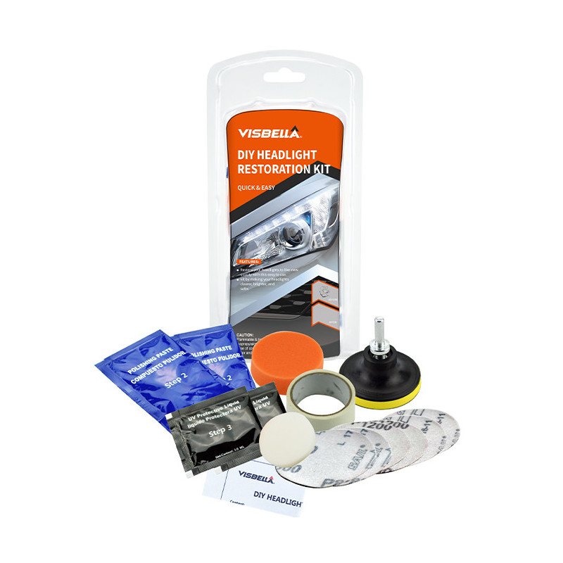 Súprava na obnovenie svetlometov vám umožní nasvietiť a obnoviť plastové šošovky vrátane svetlometov, zadných svetiel, hmlových a smerových svetiel. Obnovením čistoty šošovky sa zlepší výkon svetlometu a zlepší sa vzhľad vozidla. Súprava obsahuje všetky položky potrebné na vykonanie úlohy. OBSAH súpravy : 2 x 3,0 ml UV ochranná kvapalina 2x brúsne disky P800 2 x brúsne disky P1200 2 x brúsne disky P2000 1 x krycia páska (300*2 cm) 1 x oranžový špongiový disk 2 x 40 g leštiaca pasta 1 x Adaptér na brúsne papiere a leštiace špongie (pre ručné aj strojné brúsenie/leštenie) so závitom M10 1 x biely špongiový disk VÝHODY A VLASTNOSTI: Navrhnuté na obnovenie čírosti šošoviek svetlometov, ktoré sú zožltnuté, zakalené alebo zahmlené. Súprava na obnovu šošoviek svetlometov zlepšuje výkon svetlometu. Tri jednoduché kroky: brúsenie, leštenie a ochrana. Jednoduchšie a omnoho lacnejšie ako výmena starého svetlometu. Dodáva sa s návodom na jednoduché použitie. Obnovuje svetlomety, zadné svetlá, hmlovky či smerové svetlá. Táto súprava je určená na obnovu 2 svetlometov. POSTUP PRI OPRAVE : Príprava: Vyčistite šošovku svetlometu vodou. Prekryte páskou okolitý obvod šošovky, aby ste predišli poškriabaniu laku vozidla Sú dva spôsoby pieskovania a leštenia : manuálne alebo strojové, strojové samozrejme má lepší výsledok (za pomoci brúsky alebo vŕtačky). Krok 1. BRÚSENIE Navlhčite brúsny kotúč a pripevnite ho na adaptér. Brúste s tromi rôznymi zrnitosťami, aby ste úplne odstránili silné zažltnutie, vyblednutie a koróziu. Poznámka: Používajte brúsne kotúče od hrubých po jemné: P800 --> P1200 -->P2000. Ak tak neurobíte, dôjde k zlyhaniu obnovy. Odporúča sa pri brúsení striekať priebežne na svetlomet vodu. Krok 2. LEŠTENIE Pripojte oranžový špongiový kotúč na adaptér a naneste naň leštiacu pastu. Leštite šošovku, kým sa lesk nevráti do pôvodného stavu. Poznámka: Najlepšie výsledky dosiahnete použitím elektrickej vŕtačky alebo elektrického leštidla. Ak leštíte ručne, leštite nie menej ako 200 ťahmi krúživým pohybom v smere hodinových ručičiek. Krok 3. OCHRANA Pred pokračovaním v tomto kroku vyčistite šošovku svetlometu a uistite sa, že je šošovka suchá. Uistite sa, že svetlomet nie je vystavený priamemu slnečnému žiareniu (VEĽMI DÔLEŽITÉ). Pomocou bieleho špongiového disku dodaného v súprave rovnomerne naneste vrstvu ochrannej tekutiny na povrch šošovky. Nechajte ochrannú kvapalinu pôsobiť a vysušiť 15 minút. Potom nechajte kvapalinu vytvrdnúť na priamom slnku 1 až 2 hodiny. Po kroku 3 udržujte šošovku suchú a nevystavujte ju vlhkosti. Neumývajte auto 24 hodín. Upozornenie: Môže spôsobiť podráždenie očí a pokožky. V prípade kontaktu s očami ich ihneď vypláchnite vodou a vyhľadajte lekársku pomoc. UCHOVÁVAJTE MIMO DOSAHU DETÍ .