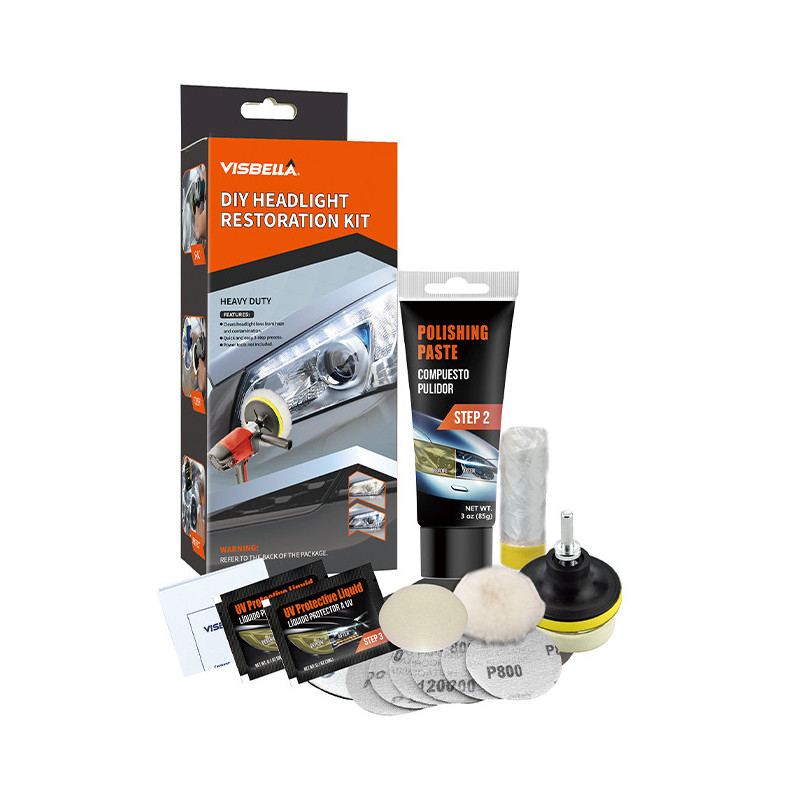 "Súprava na obnovenie svetlometov vám umožní nasvietiť a obnoviť plastové šošovky vrátane svetlometov, zadných svetiel, hmlových a smerových svetiel. Obnovením čistoty šošovky sa zlepší výkon svetlometu a zlepší sa vzhľad vozidla. Súprava obsahuje všetky položky potrebné na vykonanie úlohy. OBSAH súpravy : 2 x 3,0 ml ochranná kvapalina 2 x brúsne disky P800 2 x brúsne disky P1200 2 x brúsne disky P2000 1 x krycia páska (300*2 cm) 1 x adaptér na ručné alebo strojné brúsenie/leštenie, závit M10 1 x vlnené leštiaca podložka 1 x leštiaca pasta v tube 1 x Adaptér 1 x biely špongiový disk VÝHODY A VLASTNOSTI: Navrhnuté na obnovenie čírosti šošoviek svetlometov, ktoré sú zožltnuté, zakalené alebo zahmlené. Súprava na obnovu šošoviek svetlometov zlepšuje výkon svetlometu. Tri jednoduché kroky: brúsiť, leštiť a ochrániť. Jednoduchšie a omnoho lacnejšie ako výmena starého svetlometu. Dodáva sa s návodom na jednoduché použitie. Súprava na obnovu svetlometov neobsahuje domáci leštiaci stroj. Obnovuje svetlomety, zadné svetlá, hmlovky či smerové svetlá. POSTUP PRI OPRAVE : Príprava: Vyčistite šošovku svetlometu vodou. Prekryte páskou okolitý obvod šošovky, aby ste predišli poškriabaniu laku vozidla. Sú dva spôsoby pieskovania a leštenia : manuálne alebo strojové, strojové samozrejme má lepší výsledok (za pomoci brúsky alebo vŕtačky). Krok 1. BRÚSENIE Navlhčite brúsny kotúč a pripevnite ho k adaptéru. Brúste s tromi rôznymi zrnitosťami, aby ste úplne odstránili silné zažltnutie, vyblednutie a koróziu. Pri brúsení sa odporúča priebežne striekať na svetlomet vodu. Poznámka: Používajte brúsne kotúče najskôr od hrubých po jemné: P800 --> P1200 -->P2000. Ak tak neurobíte, dôjde k zlyhaniu obnovy. Krok 2. LEŠTENIE Pripojte vlnenú podložku na adaptér a naneste leštiacu pastu. Leštite šošovku, kým sa lesk nevráti do pôvodného stavu. Poznámka: Najlepšie výsledky dosiahnete použitím elektrickej vŕtačky alebo elektrického leštidla. Ak leštíte ručne, leštite nie menej ako 200 ťahmi krúživým pohybom v smere hodinových ručičiek. Krok 3. OCHRANA Pred pokračovaním v tomto kroku vyčistite šošovku svetlometu a uistite sa, že je šošovka suchá. Uistite sa, že svetlomet nie je vystavený priamemu slnečnému žiareniu (VEĽMI DÔLEŽITÉ). Pomocou bieleho špongiového disku dodaného v súprave rovnomerne naneste vrstvu ochrannej tekutiny na povrch šošovky. Nechajte ochrannú kvapalinu pôsobiť a vysušiť 15 minút. Potom nechajte kvapalinu vytvrdnúť na priamom slnku 1 až 2 hodiny. Po kroku 3 udržujte šošovku suchú a nevystavujte ju vlhkosti. Neumývajte auto 24 hodín. Upozornenie: Môže spôsobiť podráždenie očí a pokožky. V prípade kontaktu s očami ich ihneď vypláchnite vodou a vyhľadajte lekársku pomoc. UCHOVÁVAJTE MIMO DOSAHU DETÍ . Je špeciálny prípravok určený na obnovenie transparentnosti svetiel v skorých štádiách zakalenia. Zvyšuje jas svetla pri jazde v noci. Vďaka svojmu zloženiu odstraňuje povrchové krytie z plastových reflektorov automobilov a motocyklov. Vhodný tiež pre leštenie čelného skla skútrov, motocyklov čelných skiel, okien, štítov prilieb. Veľmi jednoduché použitie bez použitia náradia. Uľahčuje prekonávanie technických kontrol motorových vozidiel. Balenie: 150 ml Návod: Odstráňte prebytočnú zeminu a nečistoty vlhkou mäkkou, handrou. Odporúčané: ""wizzy magické látkové interiérové utierky z mikrovlákna. Naneste malé množstvo prípravku vatovým tampónom alebo hub-kou a kruhovo leštite, kým nepocítite, že povrch je hladší. Zvyšky výrobku odstráňte suchou handrou. Ak je to potrebné, použite utierky z mikrovlákna na odstránenie mokrých a mastných stôp. Pre dosiahnutie lepšieho efektu postup opakujte niekoľko krát, v závislosti od poškodenia. Produkt je možné používať i na vankúšiky leštičky, plsti alebo špongie.Po mechanickom leštení je však potrebné doleštenie ručne. UPOZORNENIE: Dráždi oči a pokožku. Vyhnite sa kontaktu s očami. V prípade kontaktu s očami, okamžite dôkladne vypláchnite vodou a vyhľadajte lekársku pomoc. Používajte vhodné množstvo prípravku. Pri požití okamžite vyhľadajte svojho lekára a ukážte tento obal alebo označenie. Uchovávajte mimo dosahu detí. Výrobok obsahuje 5% až 15% aniónové a neiónové povrchovo aktívne látky."
