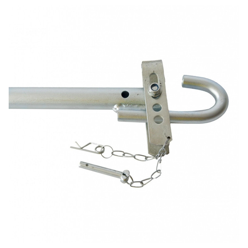 2. Zostavte tri časti ťažnej tyče a zabezpečte ich pomocou priložených kolíkov a spôn. Uistite sa, že oba háky ťažnej tyče smerujú rovnakým smerom.