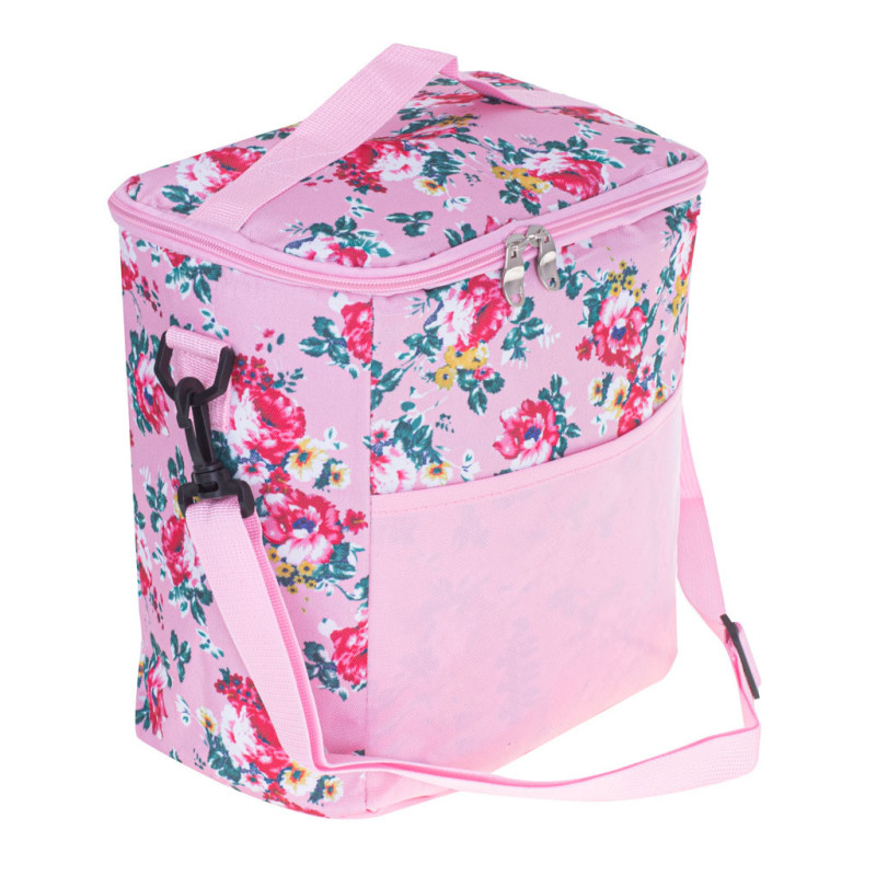 Termo taška na obed na plážový piknik 11L ružová s kvetmi""