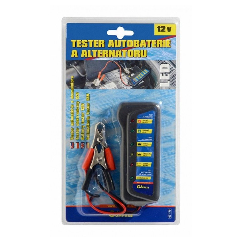 LED tester je určený pre rýchle vyhodnotenie stavu autobatérie a vyhodnotenie funkcie dobíjacej sústavy (alternátora) automobilov s napätím 12 V. Tester je vhodný pre v&ˇetky typy olovených akumulátorov.