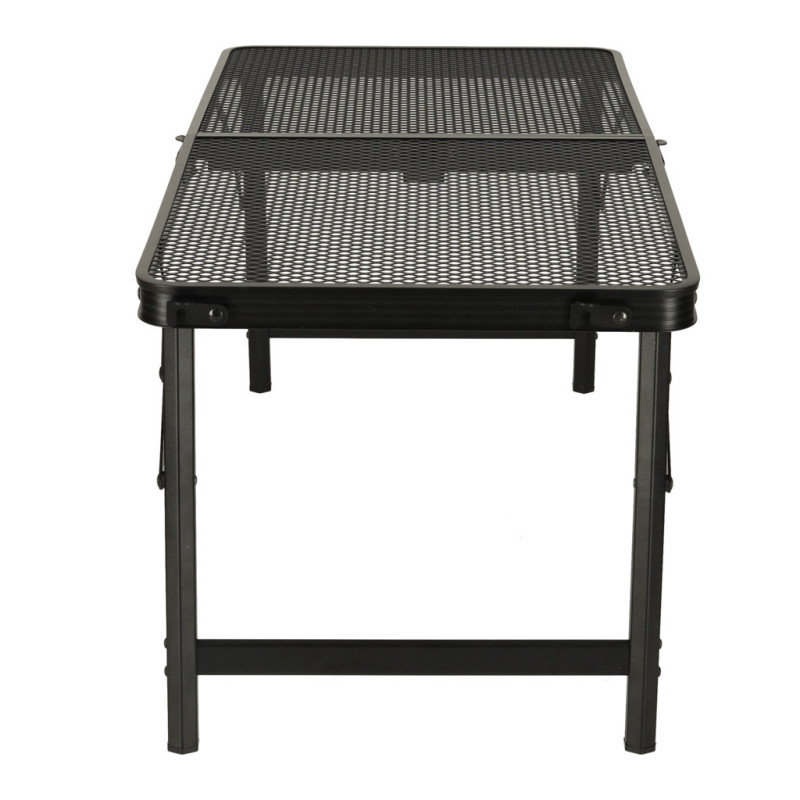 Vďaka hliníkovej konštrukcii poskytuje tento turistický stôl nízku hmotnosť aodolnosť proti korózii, zatiaľ čo vrchná doska zo železnej sieťoviny dodáva pevnosť a priedušnosť. Je to model, ktorý sa skvele hodí do prírody - hliníkový turistický stôl zostáva odolný aj pri intenzívnom používaní a nepriaznivých poveternostných podmienkach. Jednoduché čistenie a rýchle sušenie sú ďalšie výhody, vďaka ktorým je vynikajúcou voľbou na pláž, napozemok alebo na festival.