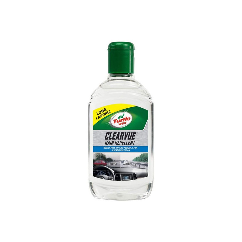 Výrobok Turtle Wax GL CLEARVUE zvyšuje odolnosť predného skla voči vode. Tekuté stierače sú určené najmä na predné sklo automobilu a zabraňujú tiež usadzovaniu nečistôt. Výhľad z auta tak nie je rušený vodou, ktorá je zo skla odpudzovaná vďaka použitej zmesi rozpúšťadiel a silikónu. Prípravok Turtle Wax GL CLEARVUE sa jednoducho aplikuje a oceníte iste aj praktické balenie s objemom 300 ml.