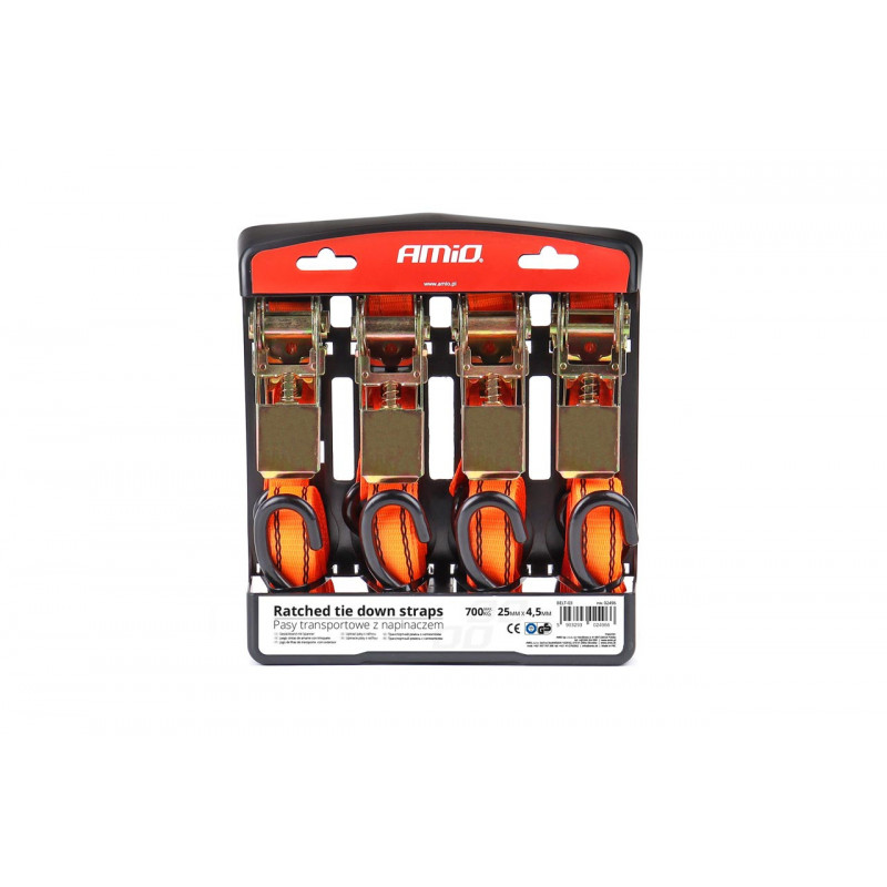 Upínacie pásy s račňou 700kg 25mm 4,5m 4ks BELT-03