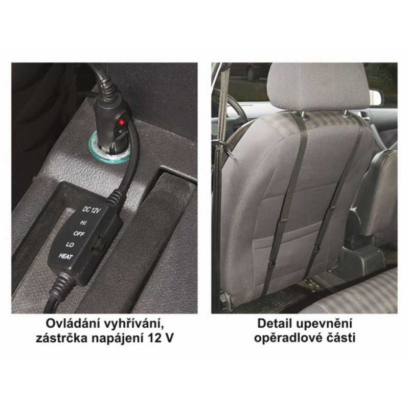 Vyhrievaný poťah sedadla so zosilnenou konštrukciou. Ideálny pre príjemnú jazdu v chladných ročných obdobiach. Zapojenie do bežnej zásuvky automobilového zapaľovača 12V konektorom. Univerzálny systém upevnenia, možno pripevniť na väčšinu bežne používaných automobilových sedadiel. Poťah možno použiť aj na sedadlách, ktoré majú zabudovaný bočný airbag priamo v operadle predných...