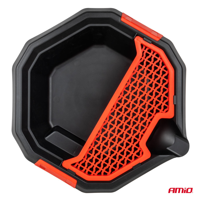 Vypúšťacia nádoba na olej s úložným priestorom na náradie AMiO-04264 je praktický a profesionálny nástroj určený na efektívne a čisté vypúšťanie použitých motorových olejov a iných prevádzkových kvapalín. Je ideálna pre autodielne, garáže a servisné prevádzky, kde je potrebné rýchlo a bezpečne manipulovať s odpadovými kvapalinami.
