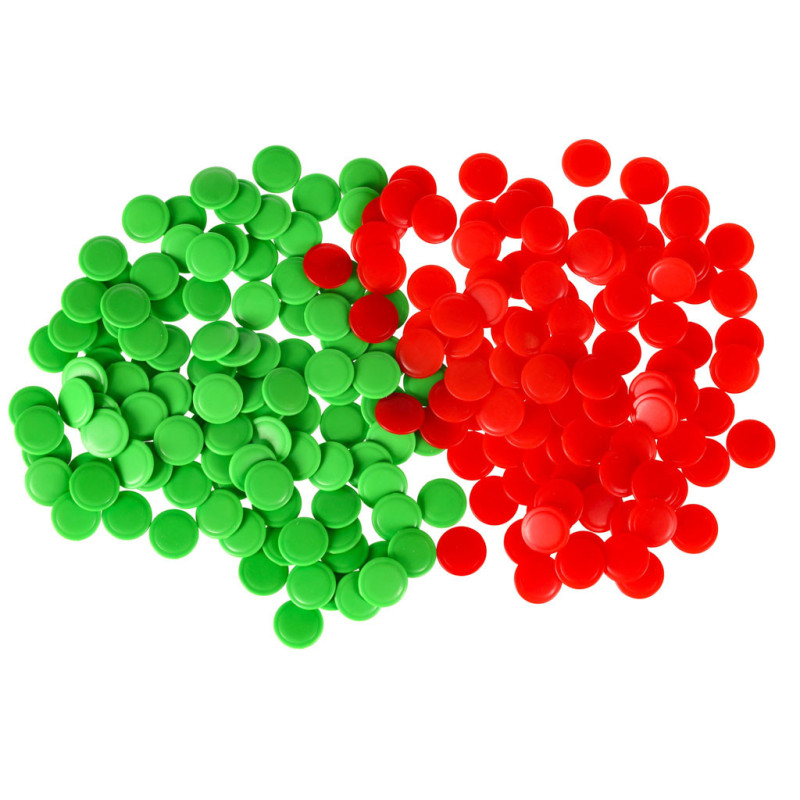 Fľaštičky na počítanie skóre: zelené 100 ks, červené 100 ks.