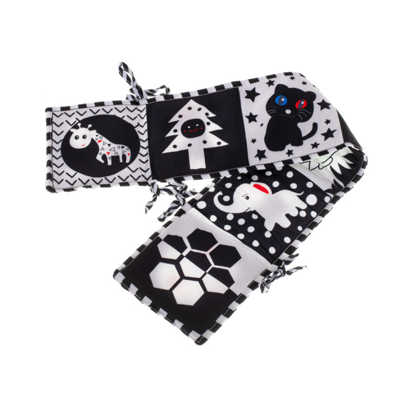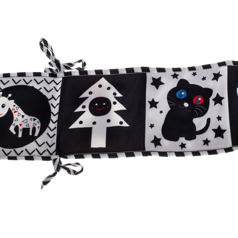 Knižka v tvare harmoniky je ideálna ako ochranná podložka do postieľky. K priečkam ho možno pripevniť pomocou šnúrky.