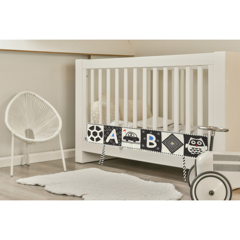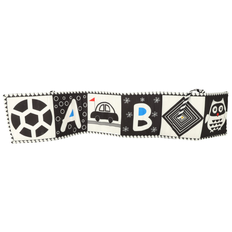 Knižka v tvare harmoniky je ideálna ako ochranná podložka do detskej postieľky. Knižku možno na priečky pripevniť pomocou šnúrky.