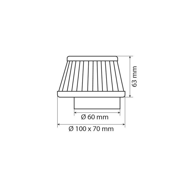 Technické parametre: Výška: 63 mm Základňa priemer: 60 mm Pripojenie priemer: 100 x 70 mm