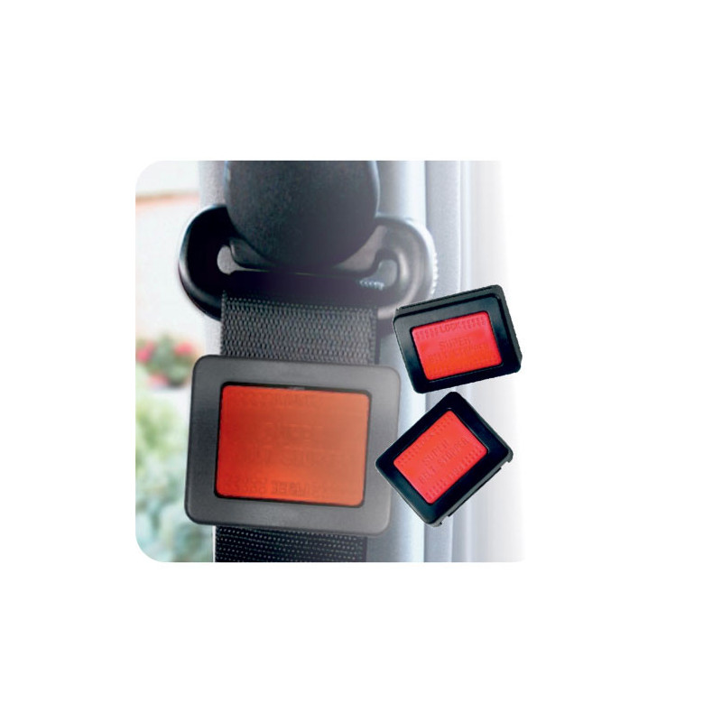 Zníží nepríjemné napätie z ťahu automatických bezpečnostných pásov. Sada 2 kusy. Zadnú časť zarážky posuňte nadol a bezpečnostný pás nasuňte na produkt. Zadnú časť opäť posuňte nahor, čím sa zarážka opäť uzamkne. Je nutnosťou, aby sa ale po páse pohybovala voľne. Pokiaľ chcete zarážku uzamknúť, potlačte LOCK, pri uvoľnení FREE. Pred samotnou jazdou si pásy ako aj zarážky dostatočne utiahnite a nastavte, aby ste predišli nehode.