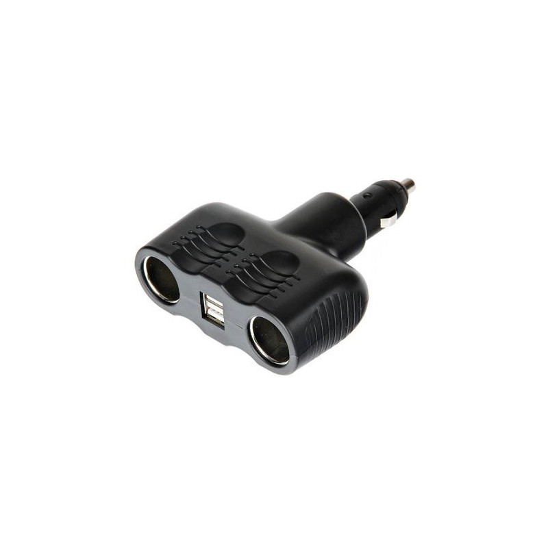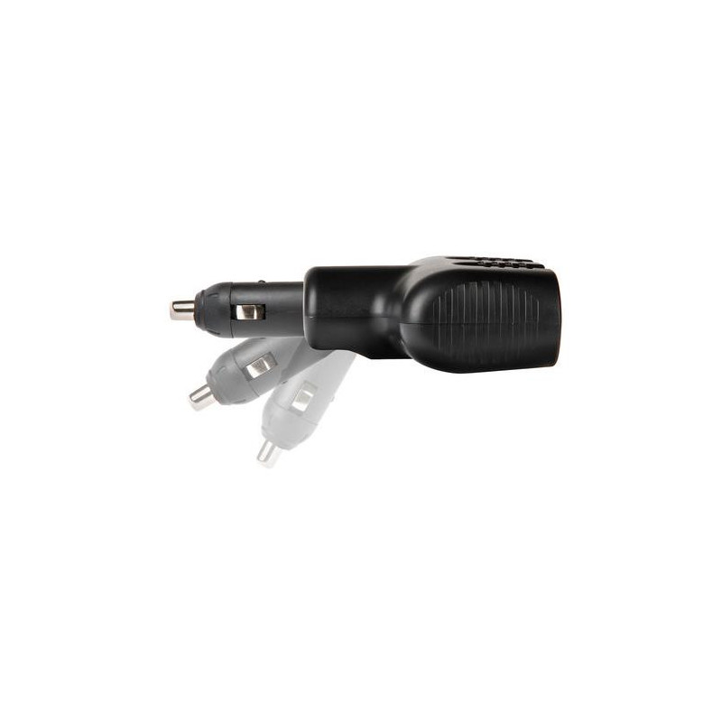 Zástrčka zapaľovača - rozdvojka 12 / 24 V Rozmery: VSTUP ---> 12/24 V - standard VÝSTUP ----> 2 x 12/24 V - standard - 10 A max, 2 x USB zásuvka (max. 2A) Nastaviteľný uhol (0-30-60 °)