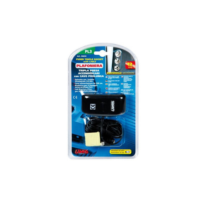 Zástrčka zapaľovača - rozdvojka 12 / 24 V 2 m kábel Rozmery: VSTUP ---> 12/24 V - standard VÝSTUP ----> 3 x 12/24 V - standard - 10 A max KÁBEL ---> 200 cm