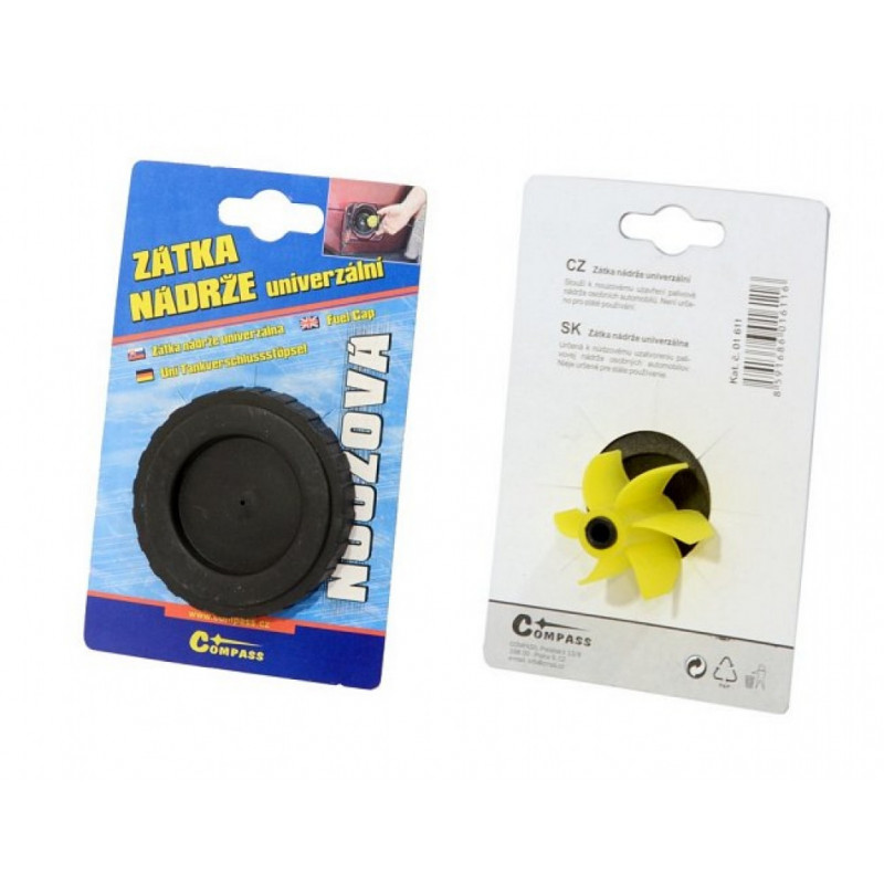 Univerzálna plastová zátka nádrže slúžiace k núdzovému uzavretie palivovej nádrže automobilov (napr. pri strate pôvodného uzáveru, apod). Možno použiť u väčšiny typov osobných automobilov.