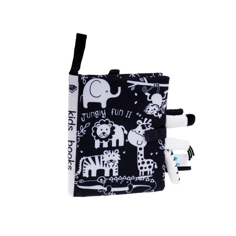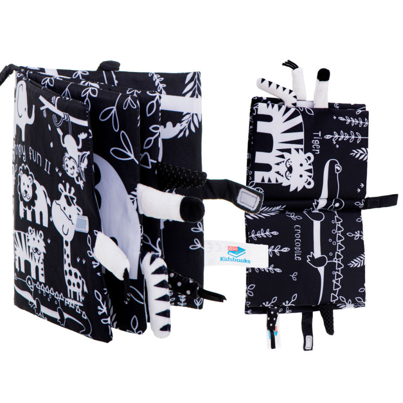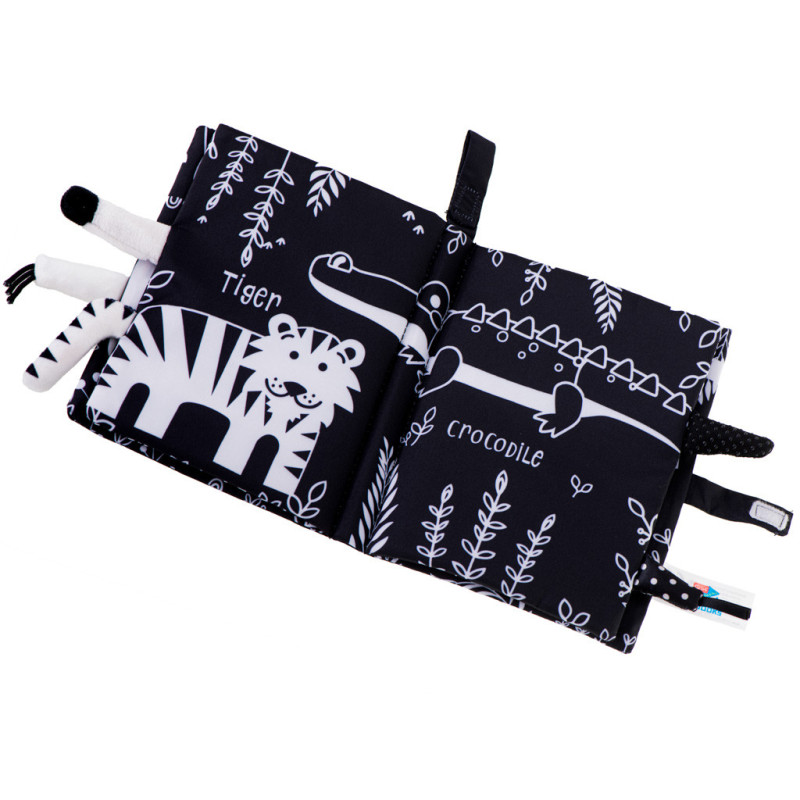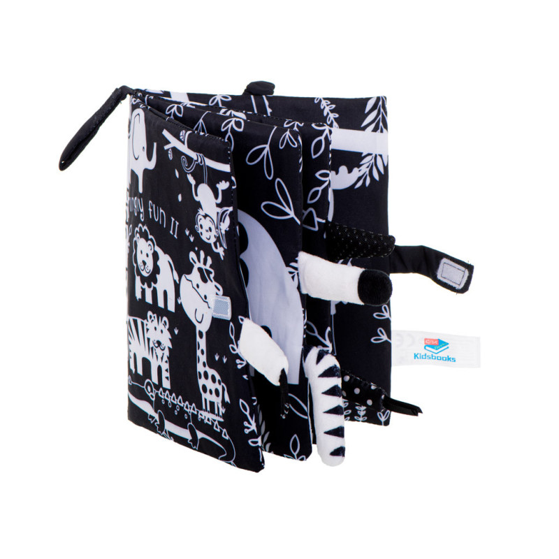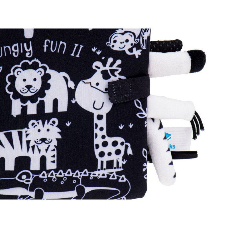 Kúzelná textilná kniha s kontrastnými vzormi je skvelá pre deti, ktoré práve spoznávajú svet. Čiernobiele zvieratá budú skvelým úvodom do sveta afrických zvierat.